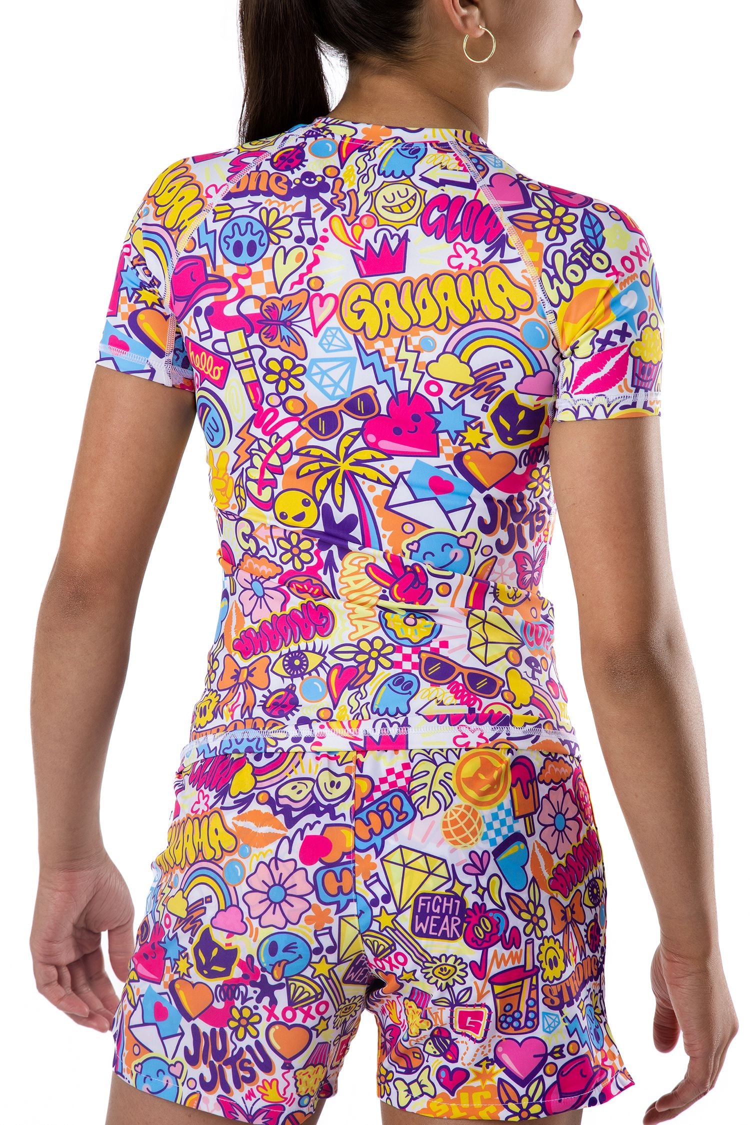 These specialty kids' BJJ rashguards feature graphics designed exclusively for Gaidama by world renowned doodle artist Craig Watkins, AKA "Wotto." Inspired by street art and designer toy trends, Wotto brings his playful and unique doodle style to life at the intersection of creepy and cute. Full of Easter eggs, messages, original characters, and intentional lines, Wotto's art is rich with organized chaos, emotion, and storytelling. The longer you look, the more interesting characters and objects you'll find hidden in corners or peeking out from their hiding places in this fun and inspiring doodle masterpiece.