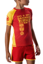 These specialty kids' BJJ rashguards are decorated with various renditions of Gaidama logos and Jiu Jitsu symbols to create a clean, finished aesthetic.