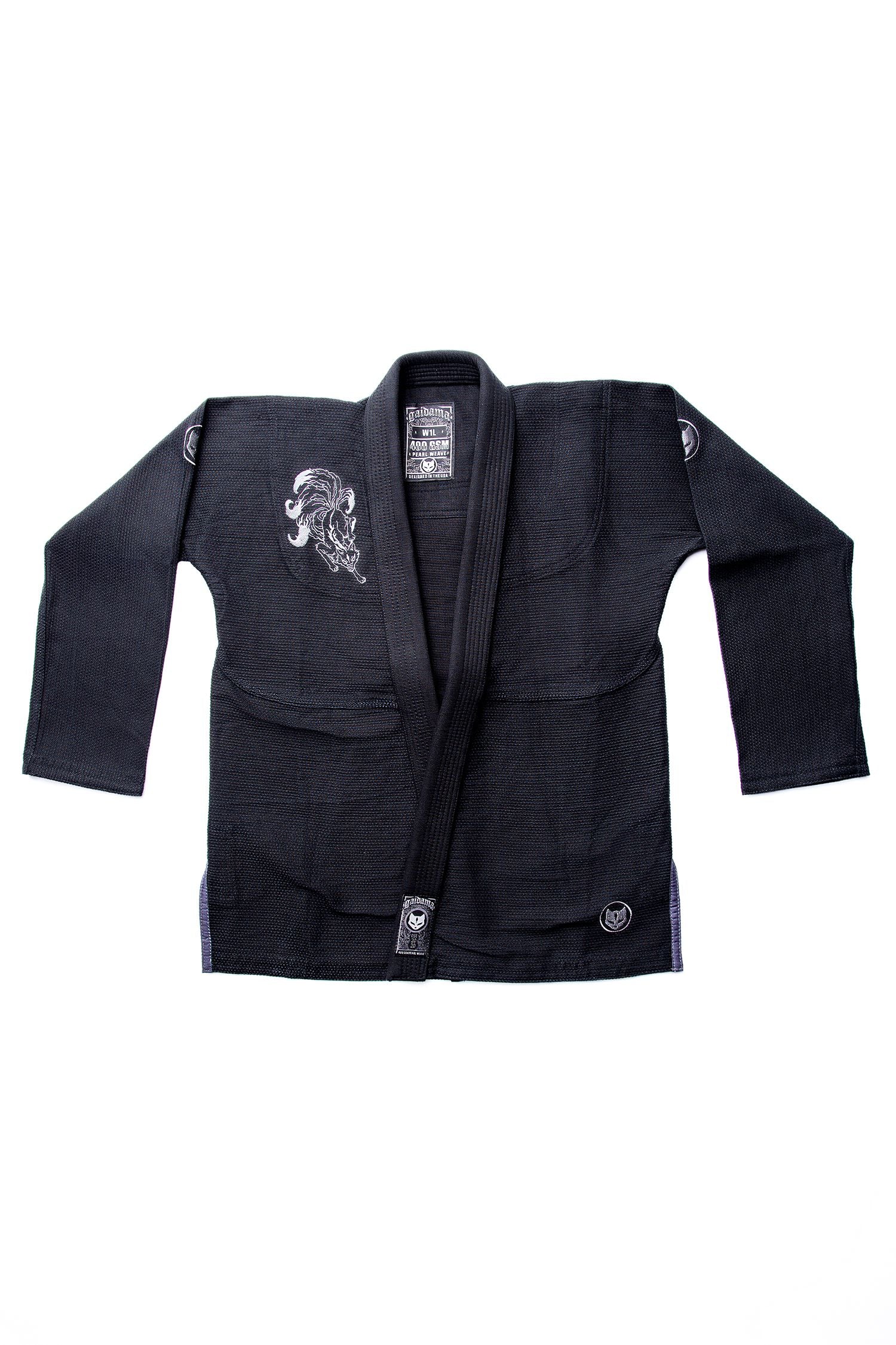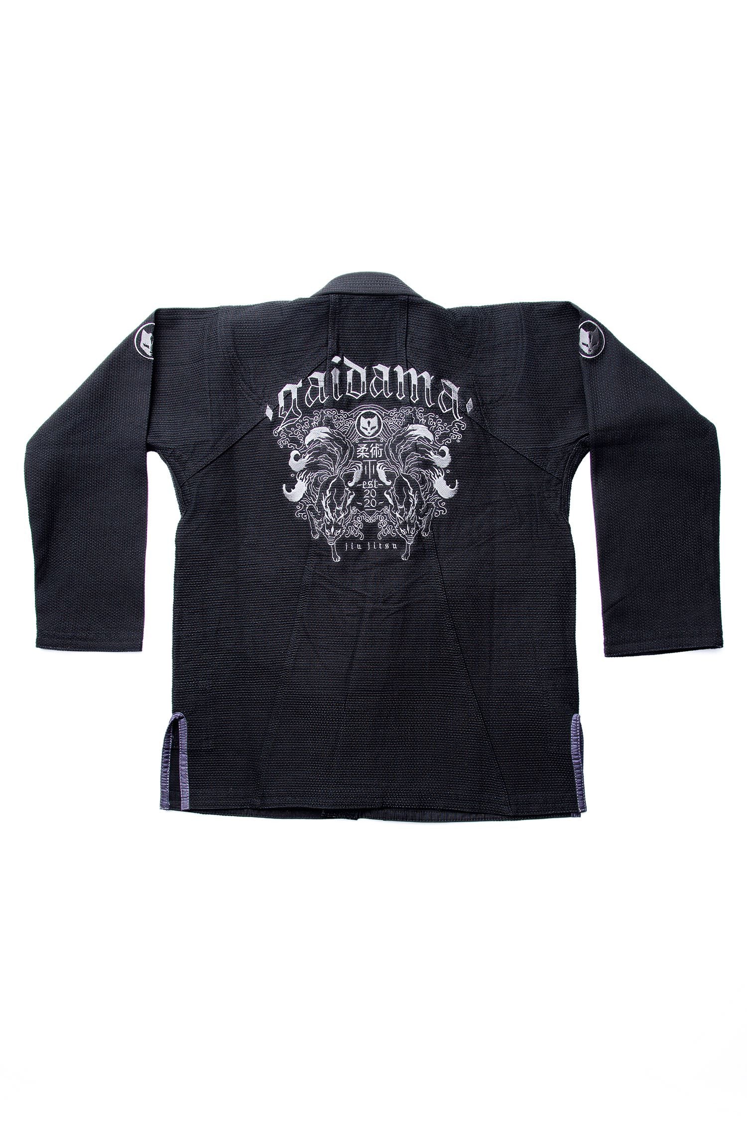 Marked by bold iconography and meticulous embroidery, the Kitsune Gi fuses modern grit with ancestral symbolism. Across the back, urban graffiti-inspired lettering and Jiu Jitsu rendered in Japanese kanji are framed by twin embroidered kitsunes descending in mirrored symmetry, a nod to traditional Japanese tiger motifs reimagined through Gaidama’s signature fox. High-density embroidery throughout reinforces both presence and longevity, built to endure the demands of the mat without compromise. Subtle yet intentional placements, including an embroidered kitsune on the shoulder and Gaidama logos along the arms, jacket, and pants, complete a design that honors cunning, adaptability, and quiet ferocity. A statement of identity, lineage, and evolution in motion.